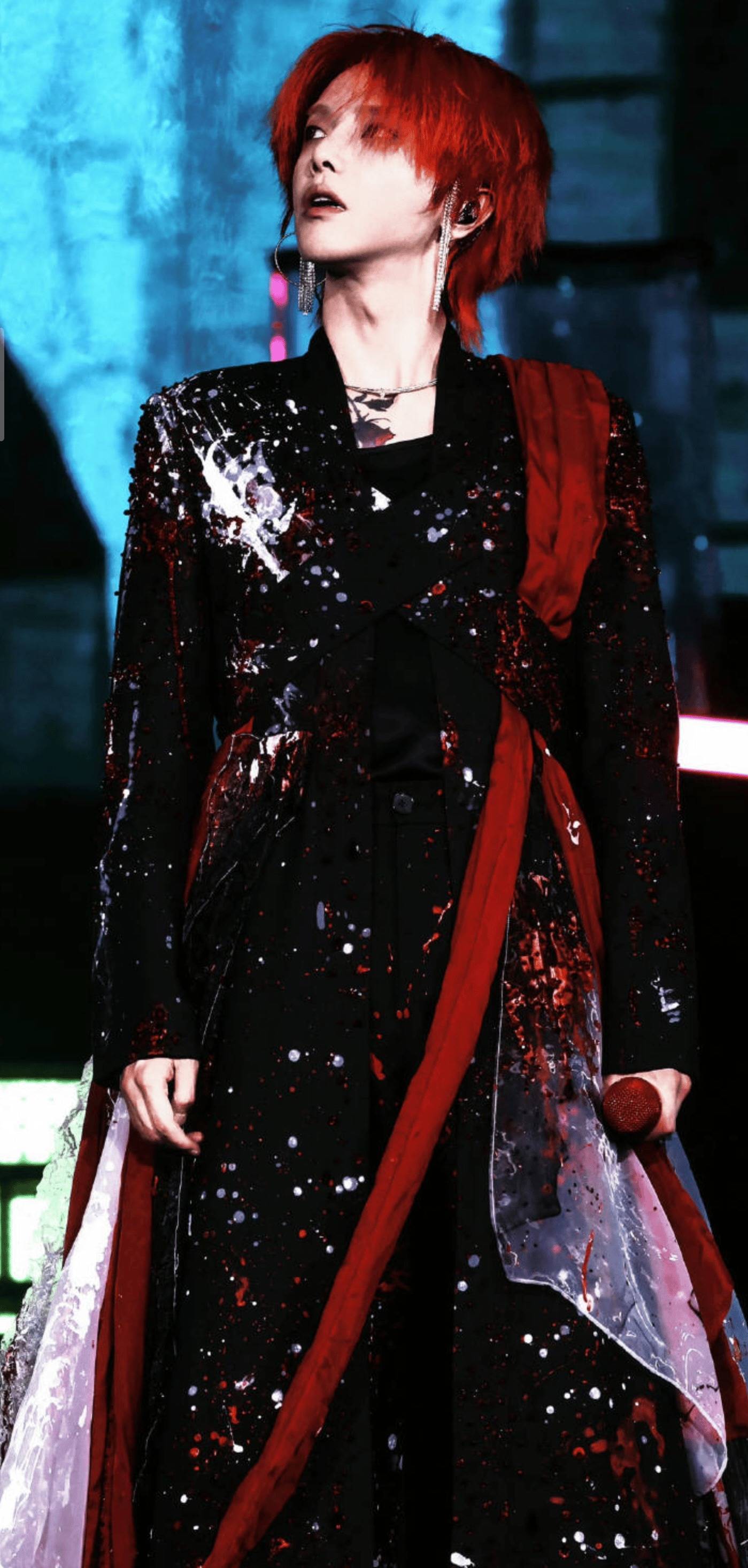 争议背后藏着双面镜像:粉丝眼中这是“艺术表达的极致”,路人却只看到“浮夸的视觉噪音”。成都站演唱会上,他那件拖尾长裙的毛毛装饰在舞台旋转时扬起,配合V领设计露出的锁骨线条,本想营造暗黑童话氛围,却被吐槽“像穿错了外婆的睡袍”。更尴尬的是无滤镜镜头下的细节——卡粉的粉底顺着脖颈纹路晕开,眼底红血丝在强光下无所遁形,与精修图里“音乐精灵”的人设形成刺眼反差。
